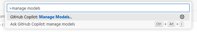- Open VS Code (insiders recommended) and run the “manage models” command (